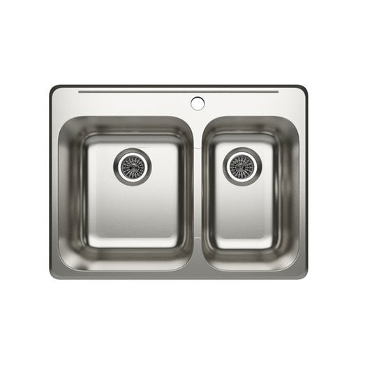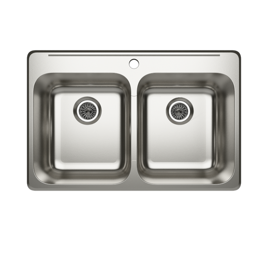 Cantrio Koncepts 31" 19-Gauge Rectangle Double Basin Stainless Steel Drop-In Kitchen Sink With Strainer Drain and Deck Mount Holes