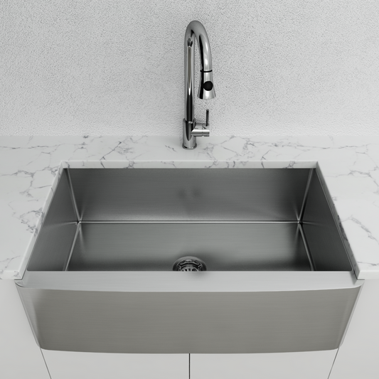 Cantrio Koncepts 33" Rectangle 18-Gauge Stainless Steel Apron Front Sink With Strainer Drain With Strainer Drain