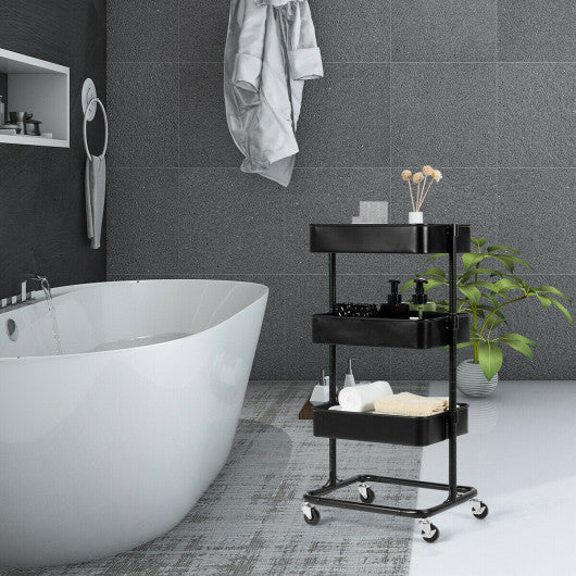 Costway 3-Tier Black Metal Rolling Storage Cart Mobile Organizer with Adjustable Shelves