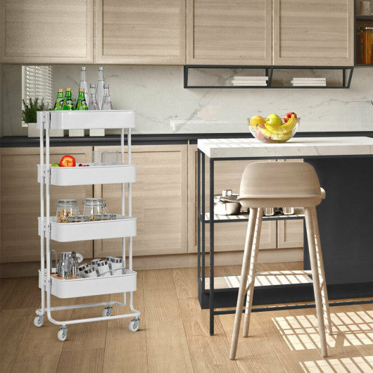 Costway 4-Tier White Metal Rolling Storage Cart Mobile Organizer with Adjustable Shelves