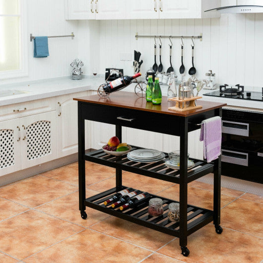 Costway Black Kitchen Island Cart Multifunction Rolling Trolley Small Wood Cart