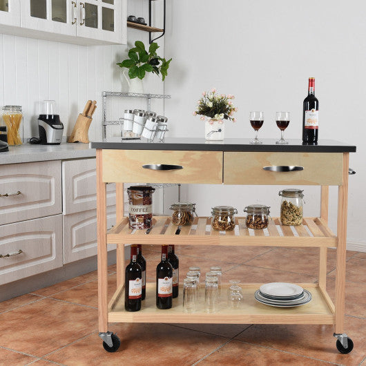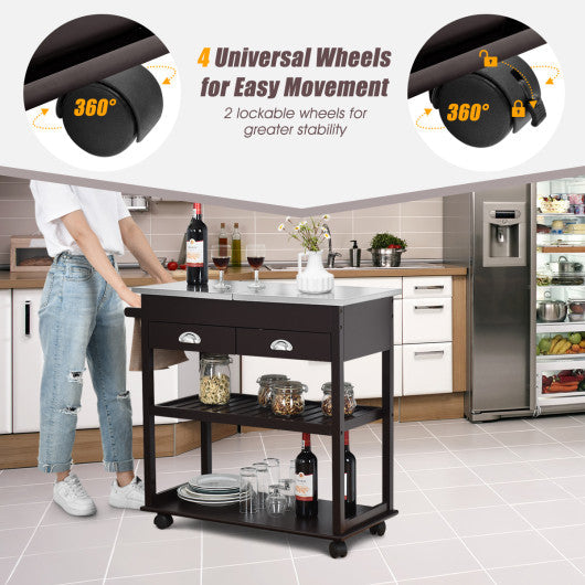 Costway Rolling Kitchen Trolley Cart Island with Stainless Steel Countertop