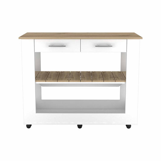HomeRoots Kitchen Island With Drawer Shelves and Casters in Light Oak and White FInish