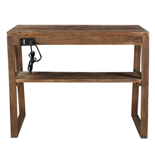 Crestview Collection Bengal Manor 40" x 20" x 31" Rustic Acacia Wood Writing Desk with USB Power In Natural Wood Finish