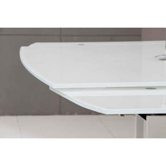 HomeRoots 30" Glass MDF And Steel Extendable Dining Table In White