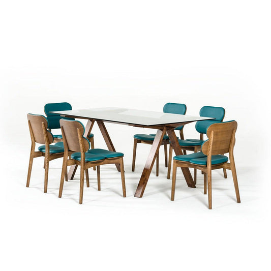 HomeRoots 30" Walnut Wood Veneer Mdf And Glass Dining Set