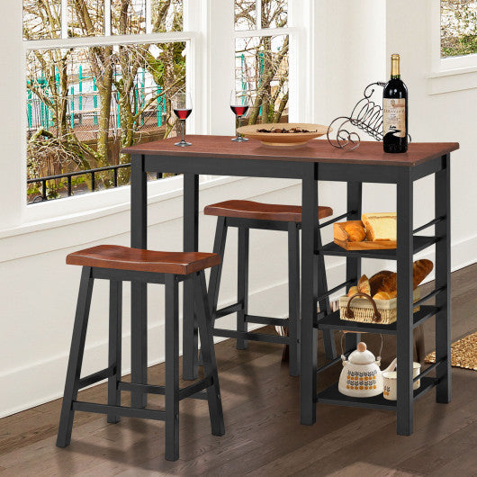 Costway 3 Piece Counter Height Dining Table Set with 2 Saddle Stools and Storage Shelves