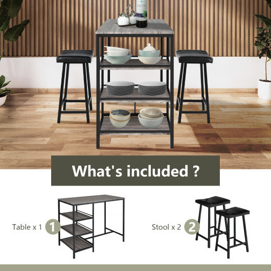 Costway 3 Pieces Black Counter Height Dining Bar Table Set with 2 Stools and 3 Storage Shelves