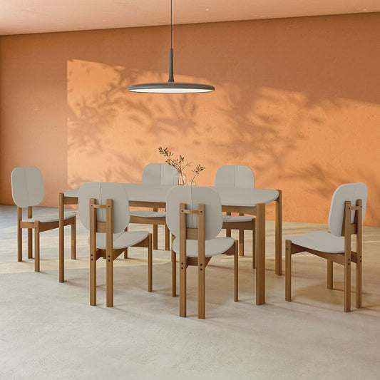 Manhattan Comfort Gales 7-Piece Greige Dining Set With 1 Large Rectangular Dining Table & 6 Chairs