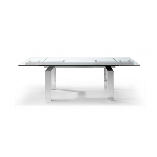 HomeRoots 79" x 40" x 31" Extendable Dining Table In Brushed Stainless Steel Finish