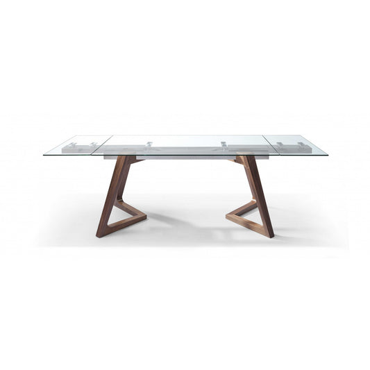 HomeRoots 63" x 35" x 30" Glass Extendable Dining Table In Walnut Finish