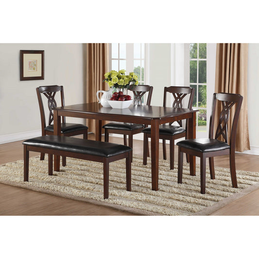 HomeRoots 60" x 36" x 30" Black Leatherette And Espresso Dining In Set Of Six