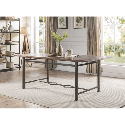 HomeRoots 76" x 36" x 30" Dining Table In Weathered Dark Oak And Dark Bronze Finish