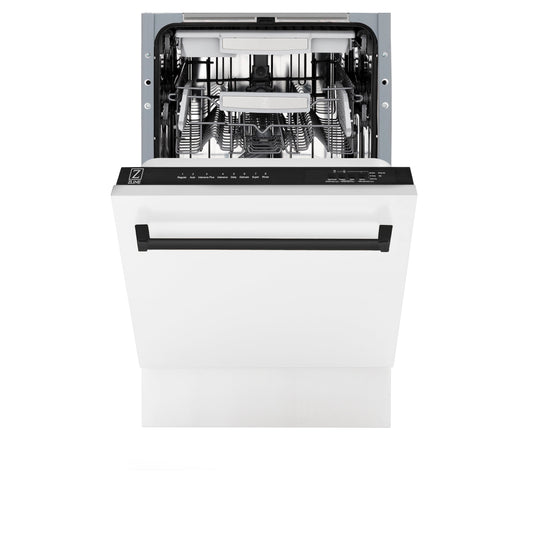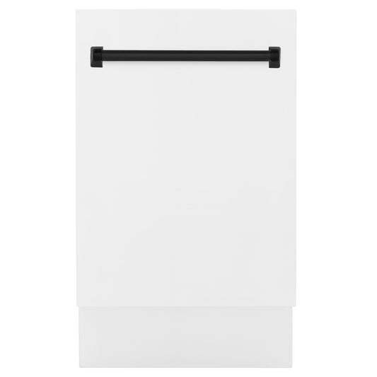 ZLINE Autograph Edition 18" White Matte Compact 3rd Rack Top Control Dishwasher With Matte Black Handle
