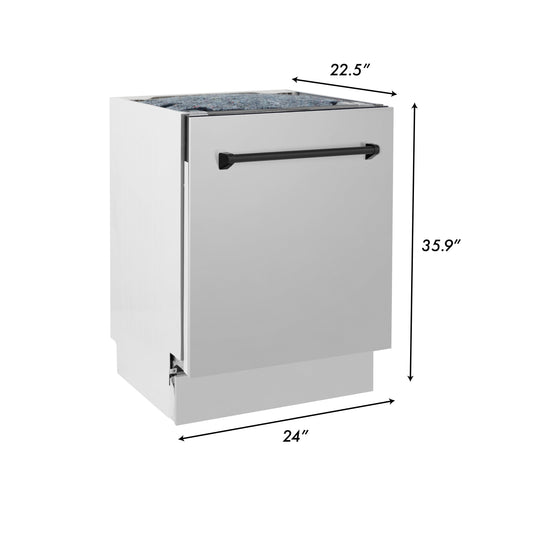 ZLINE Autograph Edition 24" Stainless Steel 3rd Rack Top Control Tall Tub Dishwasher With Matte Black Handle