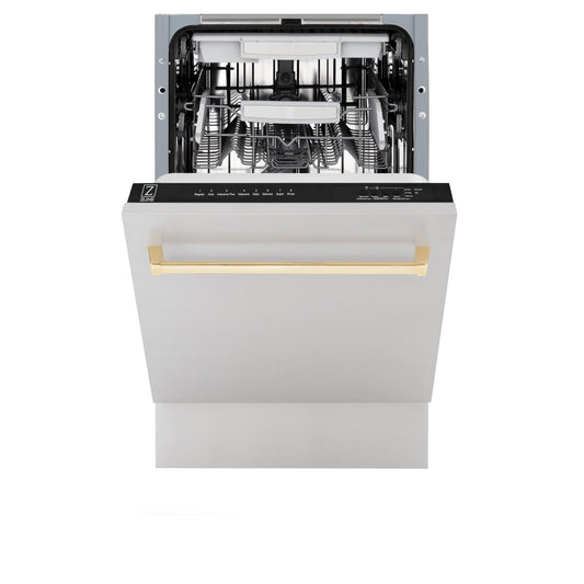 ZLINE Autograph Edition 18" Stainless Steel Compact 3rd Rack Top Control Dishwasher With Gold Handle