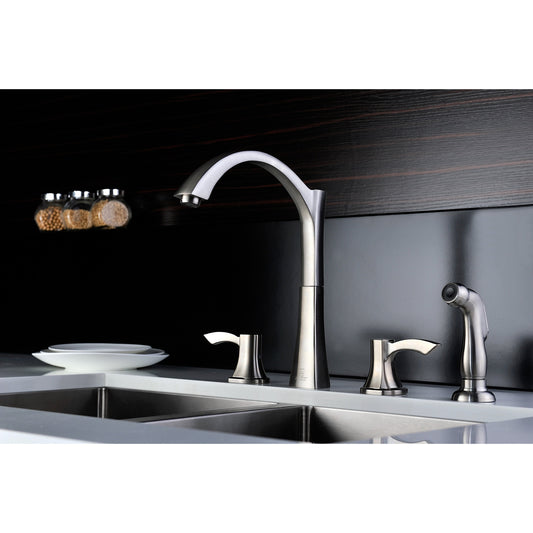 ANZZI Soave Series Double Hole Brushed Nickel Kitchen Faucet With Euro-Grip Pull Out Sprayer and 360-Degree Turning Spout