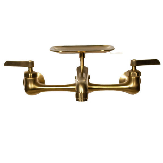 Nantucket Sinks Premium Accessories 8" Spread Wall Mounted Satin Brass Faucet With Soap Dish