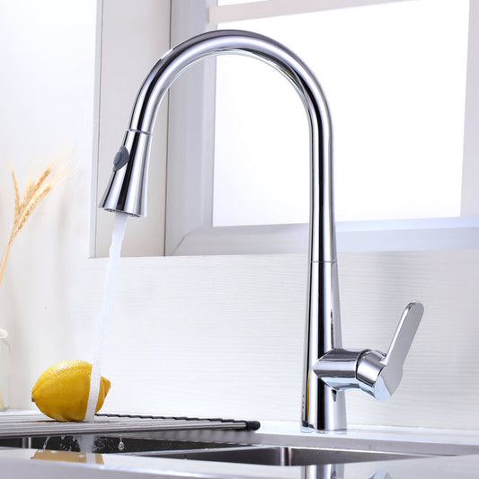 Vanity Art 17" Polished Chrome Stainless Steel Single Handle Kitchen Sink Faucet With Pull Down Sprayer