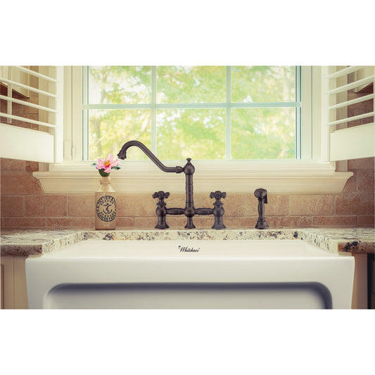 Whitehaus WHKBTCR3-9201-NT-ORB Vintage III Plus Bridge Faucet with Long Traditional Swivel Spout, Cross Handles and Solid Brass Side Spray
