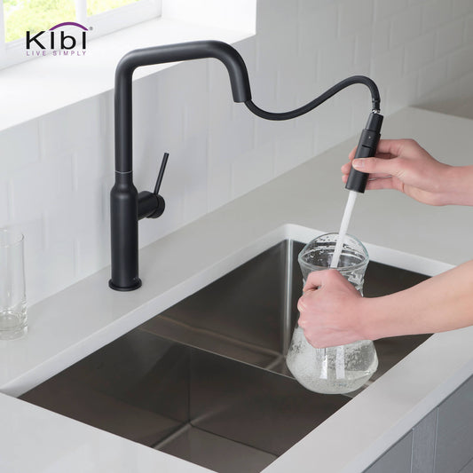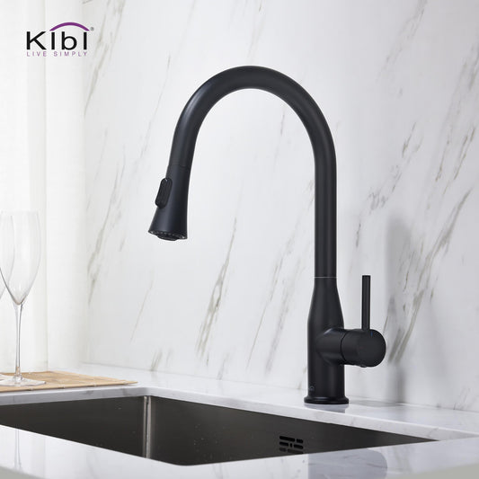 KIBI Napa Single Handle High Arc Pull Down Kitchen Faucet in Matte Black Finish