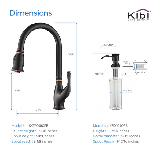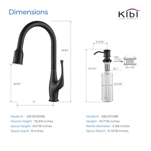 Kibi Cedar Single Handle High Arc Pull Down Kitchen Faucet With Soap Dispenser in Oil Rubbed Bronze Finish