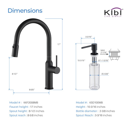 KIBI Napa Single Handle High Arc Pull Down Kitchen Faucet With Soap Dispenser in Matte Black Finish