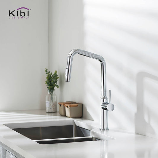 KIBI Napa Single Handle High Arc Pull Down Kitchen Faucet in Chrome Finish
