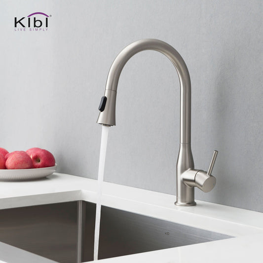 KIBI Napa Single Handle High Arc Pull Down Kitchen Faucet in Brushed Nickel Finish