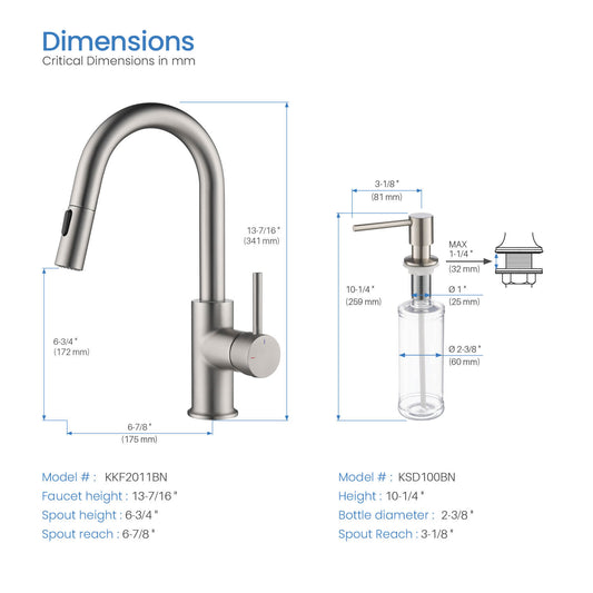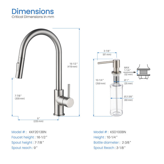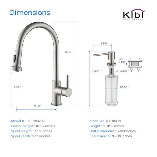 Kibi Lowa Single Handle High Arc Kitchen Bar Sink Faucet With Soap Dispenser in Brushed Nickel Finish