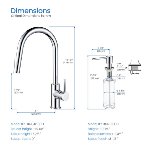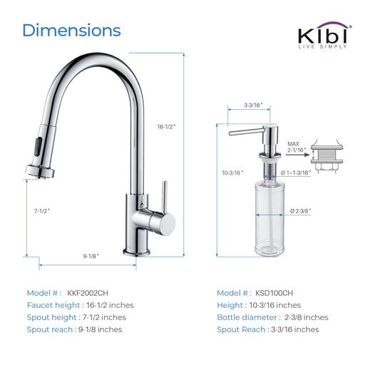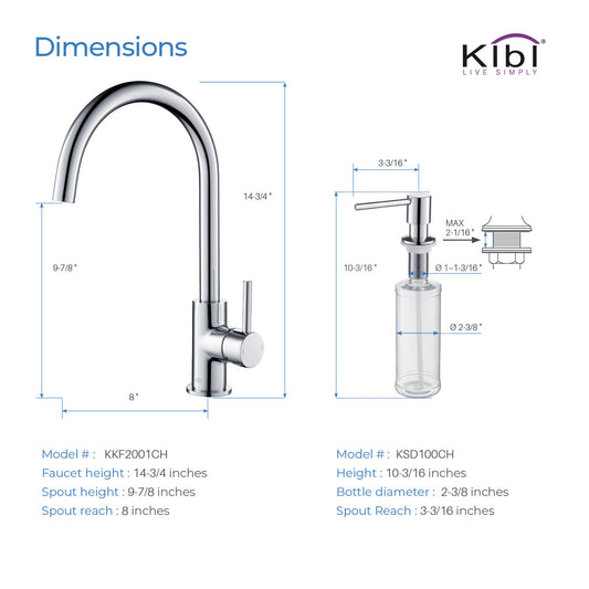 Kibi Lowa Single Handle High Arc Kitchen Bar Sink Faucet With Soap Dispenser in Chrome Finish