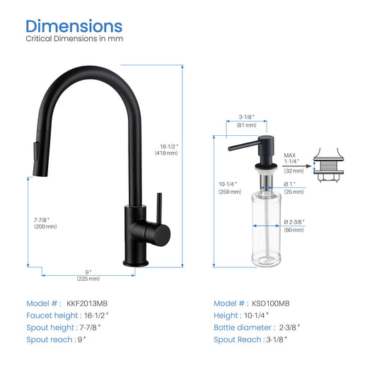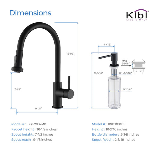 Kibi Casa Single Handle High Arc Pull Down Kitchen Faucet With Soap Dispenser in Matte Black Finish