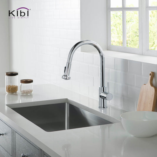 Kibi Luxe Single Handle High Arc Pull Down Kitchen Faucet in Chrome Finish