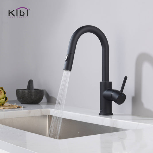 Kibi Luxe Single Handle High Arc Pull Down Kitchen Faucet in Matte Black Finish