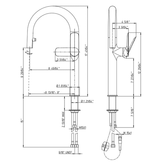 LaToscana 14" Black Metallic Single Hole Pull-Down Spray Kitchen Faucet