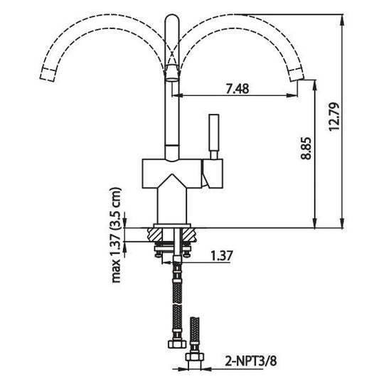 Flusso Faucets Serie 100 13" Single Hole Chrome Solid Brass Kitchen / Bar Faucet With Swivel Spout