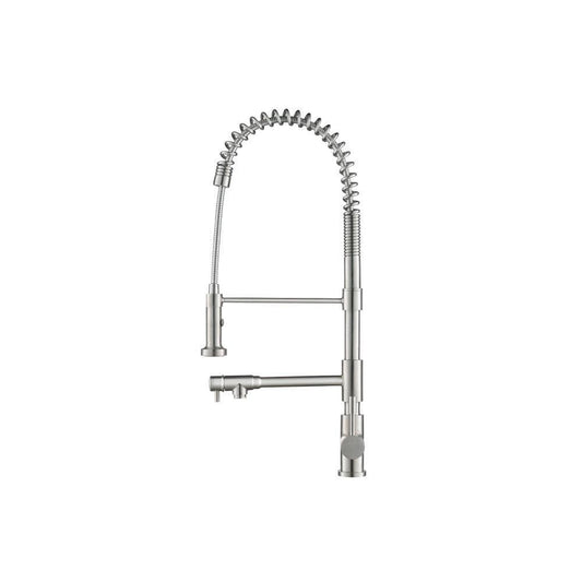 Flusso Faucets Klassiker Professio-F 27" Single Hole Polished Steel Dual-Function Stainless Steel Pull-Down Kitchen Faucet With Pot Filler