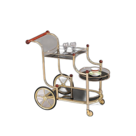 HomeRoots 38" x 21" x 33" Golden Plated And Black Glass Serving Cart