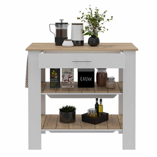 HomeRoots Kitchen Island With Drawer And 2 Open Shelves With Light Oak and White Finish