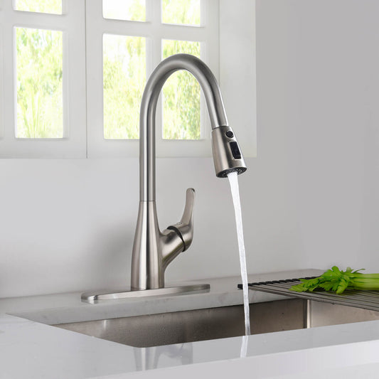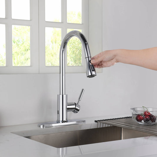 Kibi Single Handle Pull Down Kitchen Faucet With Touch Sensor In Chrome Finish