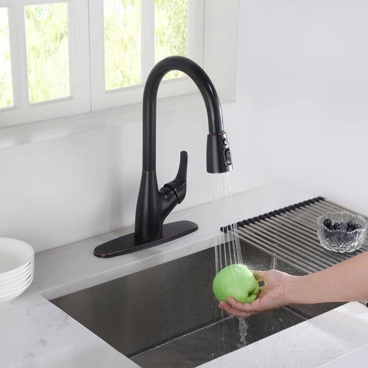 Kibi Single Handle Pull Down Kitchen Faucet In Oil Rubbed Bronze Finish