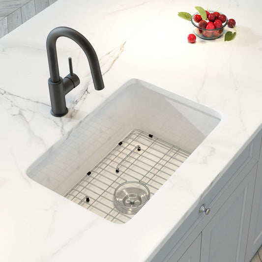 Kibi 27" x 19" x 10" Landis Series Undermounted Single Bowl Fireclay Kitchen Sink In Glossy White