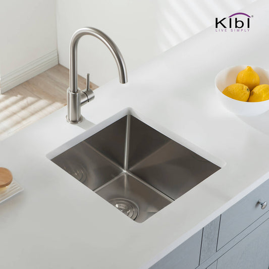 Kibi 16" x 16" x 8" Handcrafted Undermount Single Bowl Kitchen Sink With Satin Finish