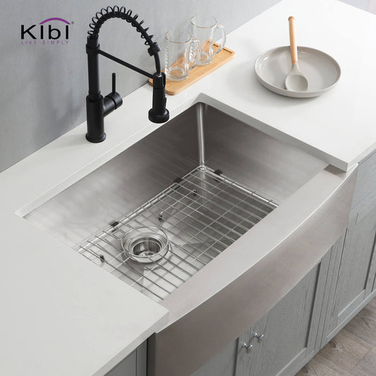 Kibi 30" x 22" x 10" Single Bowl Farmhouse Apron Kitchen Sink With Satin Finish