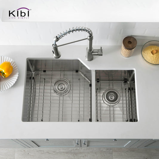 Kibi 32" x 20" x 10" Handcrafted Undermount Double Bowl Stainless Steel Kitchen Sink