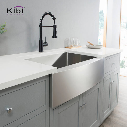 Kibi 33" x 22" x 10" Single Bowl Farmhouse Apron Kitchen Sink With Satin Finish