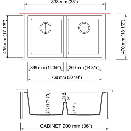 LaToscana Plados 33" x 22" x 10'' Titanium Double Bowl Granite Drop-in Kitchen Sink for 36'' Cabinet