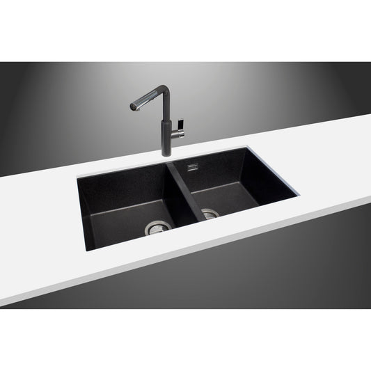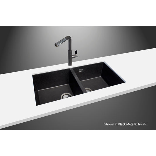 LaToscana Plados 34" x 17" x 8'' Black Metallic Double Bowl Granite Undermount Kitchen Sink
