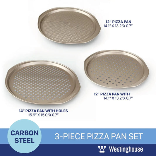 Westinghouse 3-Piece Carbon Steel Pizza Pan Set With Premium Non-stick Coating