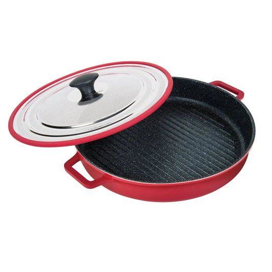 MASTERPAN Innovative Series 12” Red Stovetop Oven Grill Pan With Heat-in Steam-Out Lid, Non-stick Cast Aluminum